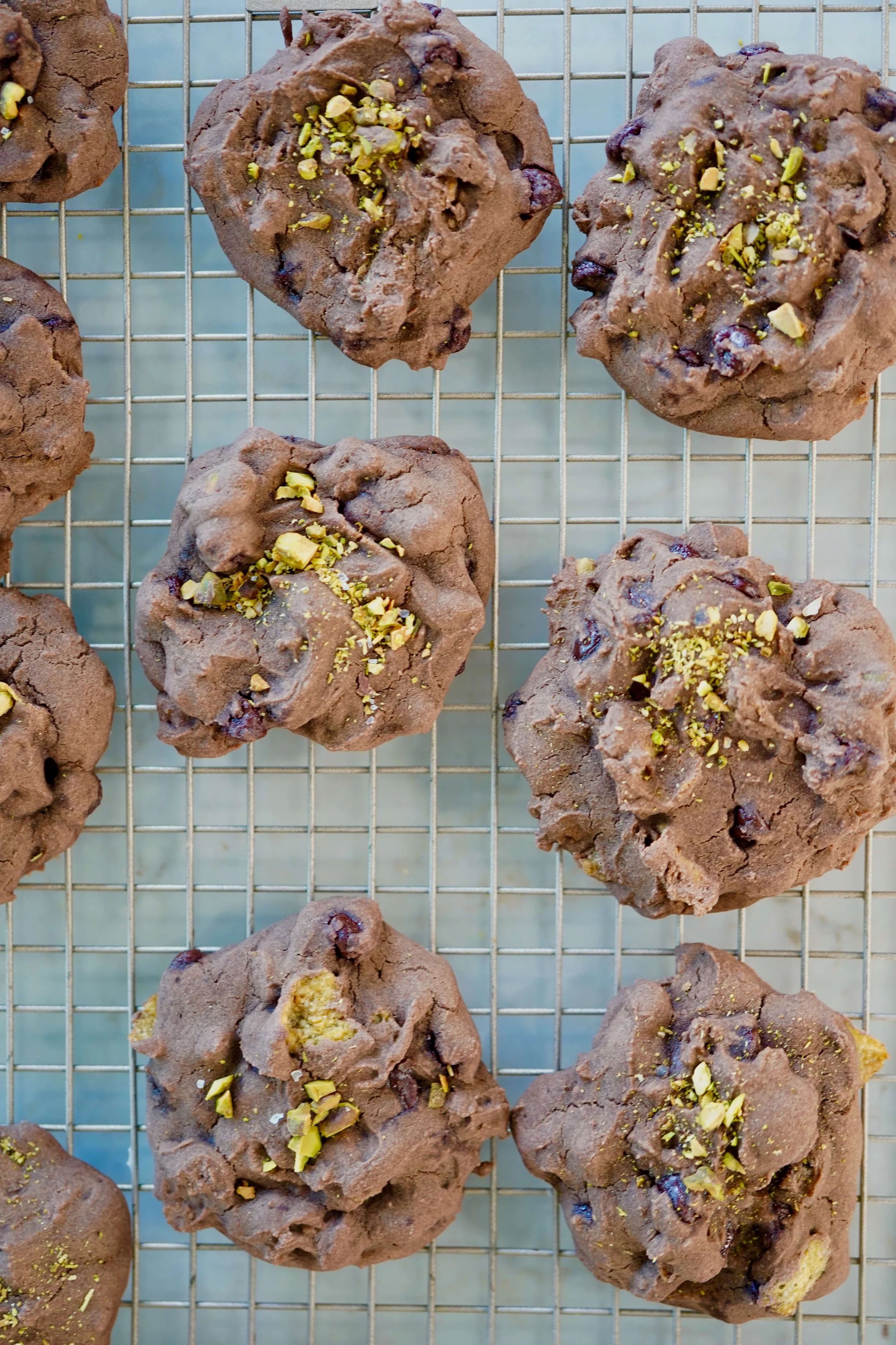Make the viral Dubai chocolate cookies at home with this easy recipe! These not-too-sweet cookies are rich, fudgy, vegan, and gluten-free, made with mochiko, cocoa, pistachios, and your choice of cornflakes or kataifi for crunch.